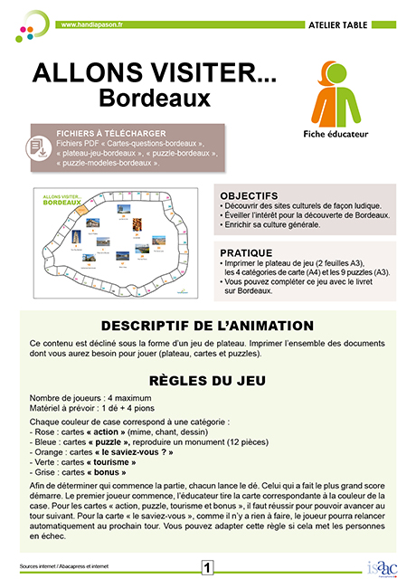 Avec ce jeu, nous connaissons mieux la ville de Bordeaux, située dans le département de la Gironde.