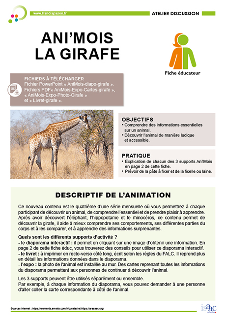 Vous pouvez compléter votre activité avec l’expo Ani’Mois et le livret Ani’Mois (rédigé selon les règles du FALC) pour en apprendre davantage sur cet animal.