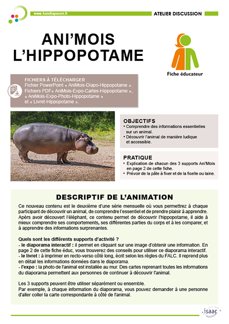 Ce livret permet d’approfondir les connaissances sur l’hippopotame.