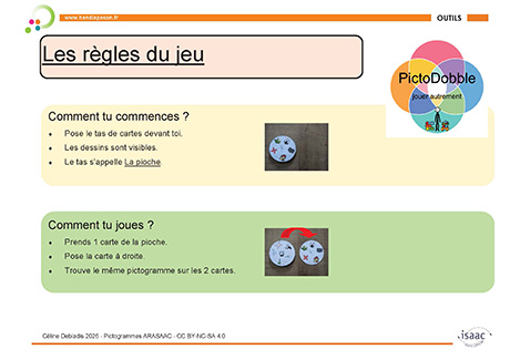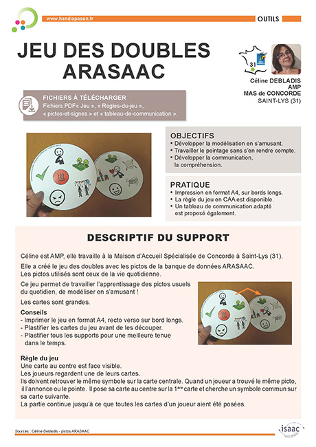 Céline partage un jeu qu’elle a décliné, illustré avec les pictos ARASAAC.