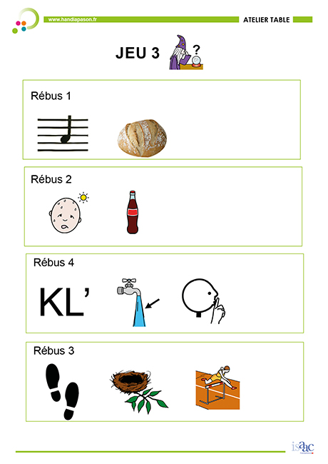 Les jeux proposés sont un jeu de mémoire, des mots mêlés, des rébus, un quiz et un puzzle.