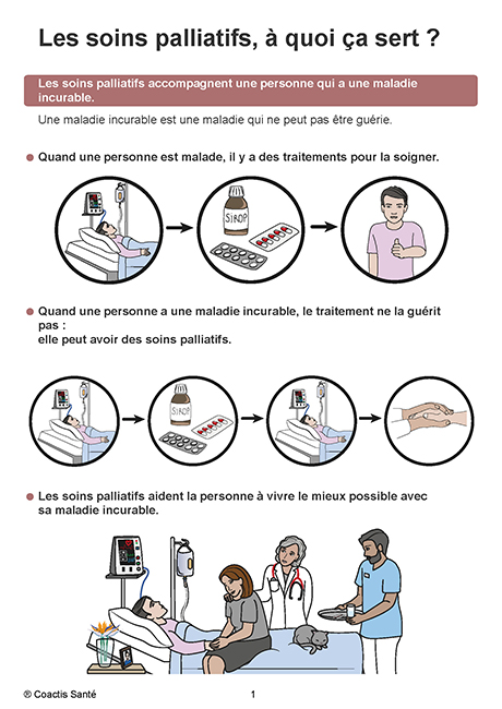 Avec des illustrations claires et rassurantes, les BD expliquent ce que sont les soins palliatifs.