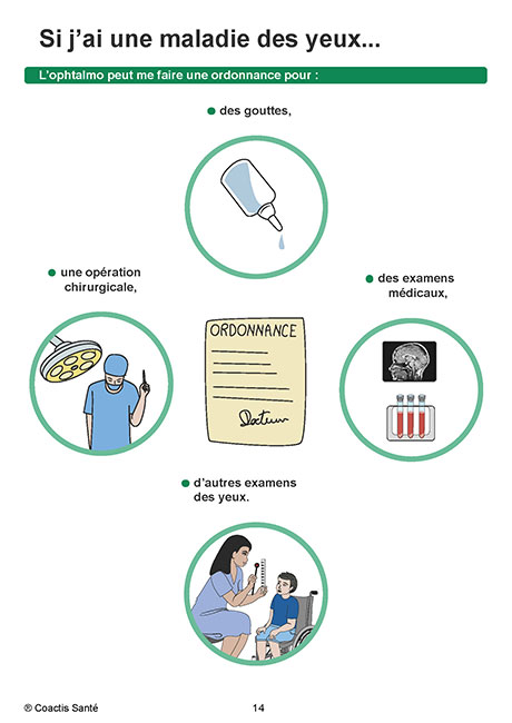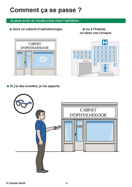 Découvrez également des fiches « Ophtalmologue» de SantéBD qui expliquent en langage FALC – Facile à lire et à comprendre – comment se passe une consultation ophtalmo et comment prendre soin de ses yeux.