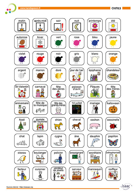 Deux versions sont déclinées (V1 et V2), des planches de pictos de 2 versions (dont une ARASAAC) sont disponibles.