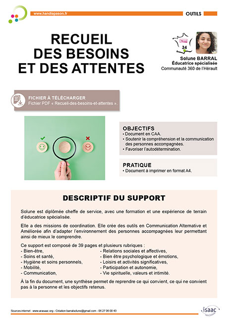 Ce document permet de recueillir les besoins et les attentes des personnes accompagnées.